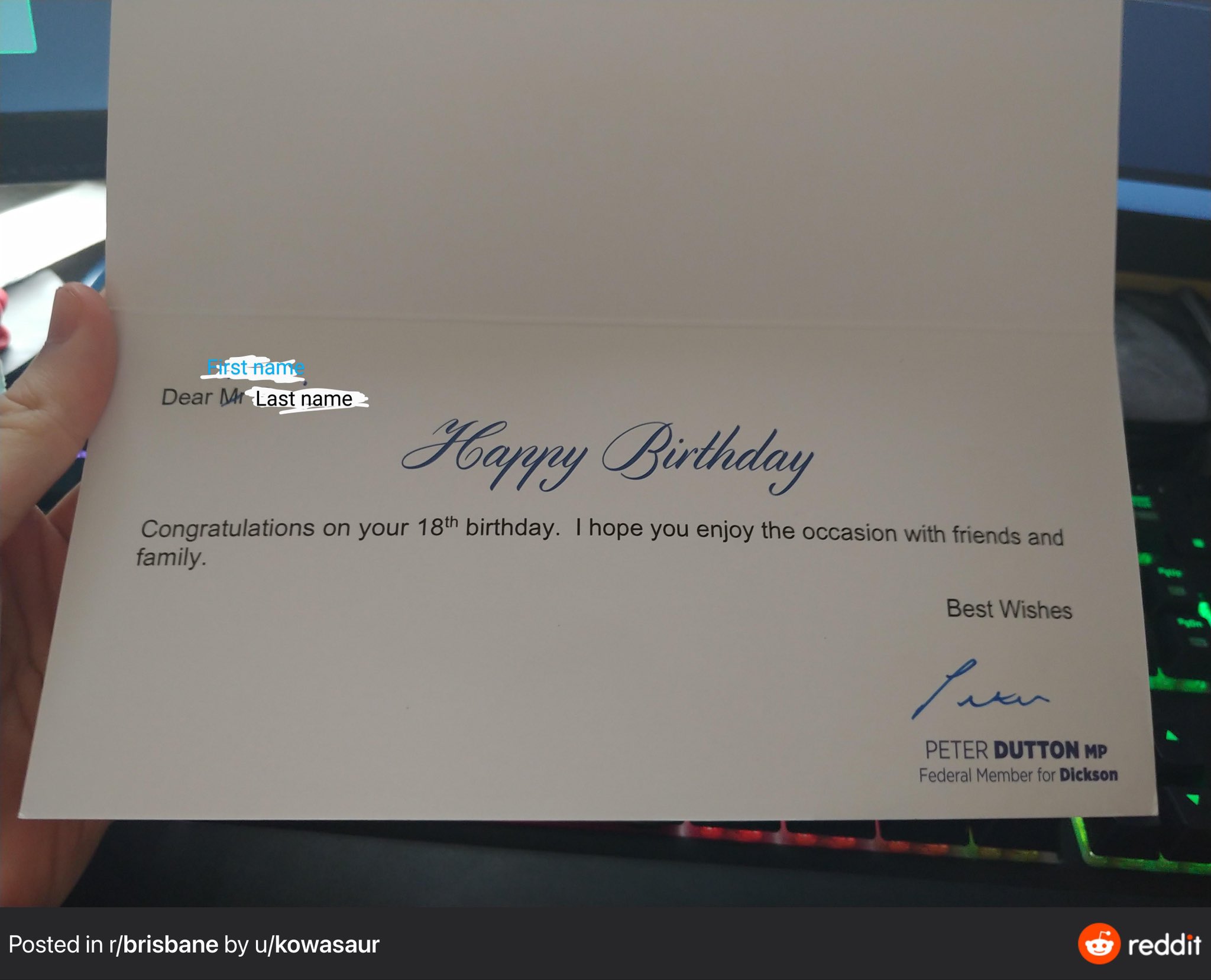 It S Time On Twitter Dutton Sending Birthday Cards To 18 Year Olds To Wish Them Happy Birthday Apparently He Knows Where They Live Https T Co Bx089nbhby Twitter